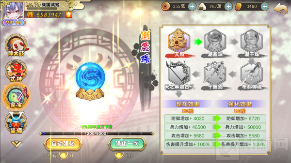哗~全是宝贝呀,一件件本该进博物馆的东西都被你收集到了,八尺琼勾玉、八咫镜、草薙剑……这么多宝贝不光好看,还很好用!家宝可以为全体战姬提升属性,同时还提供大量的伤害提升效果!