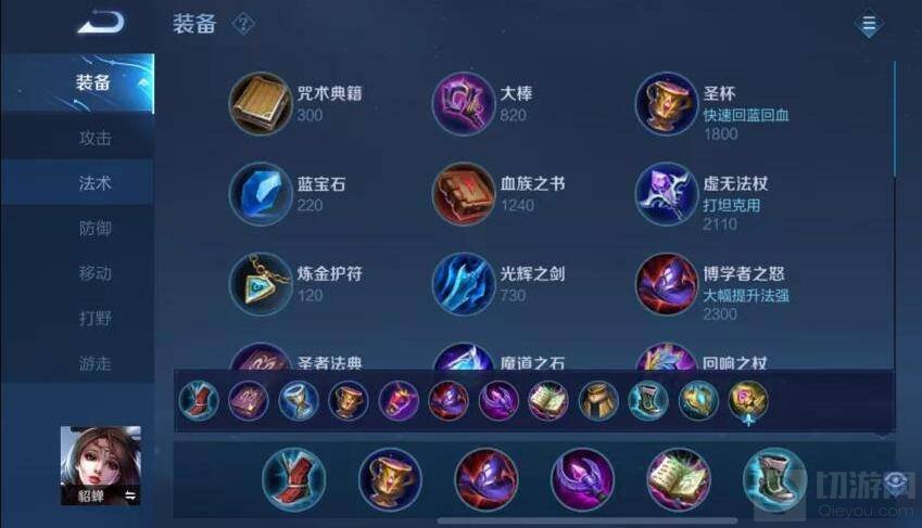 2、出装方面,在貂蝉被削之后更推荐双鞋流, 开局一个净化水晶保证续航,接着合成时之预言,帽子、大书,后期可以卖掉一双cd鞋换成金身,最后根据对面的阵容可以将圣杯换成血书或者冰心。