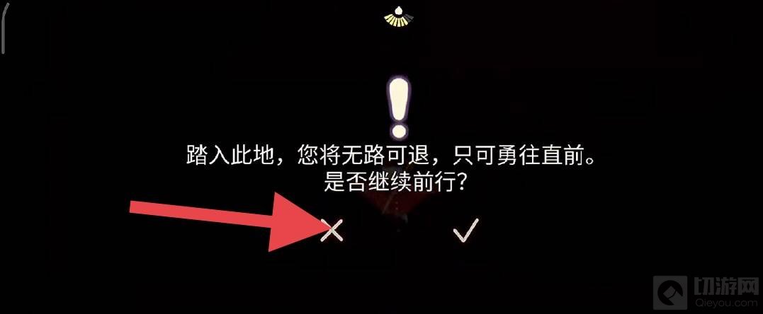 6、飞到白块上之后,向前慢慢走就会直接弹出来是否继续前行的提示,这是进入献祭的提示,点击叉或者勾都可以直接进入到伊甸终点,点击勾还可以进入献祭。