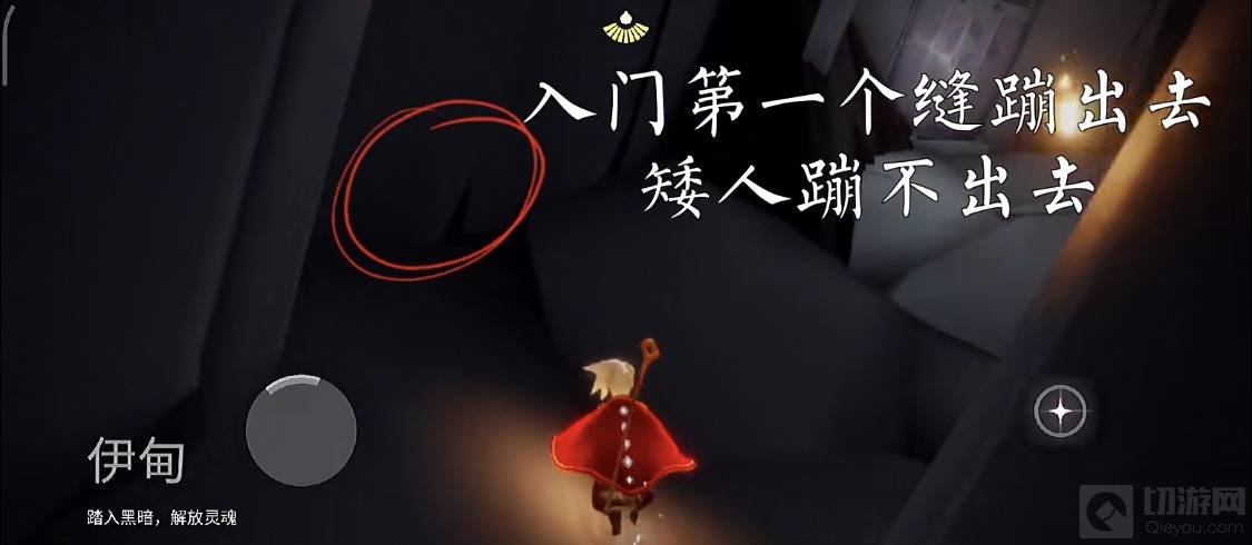 3、进入入口后,不需要打开前面的大门,直接在入口左边第一个缝隙那里蹦出去即可。