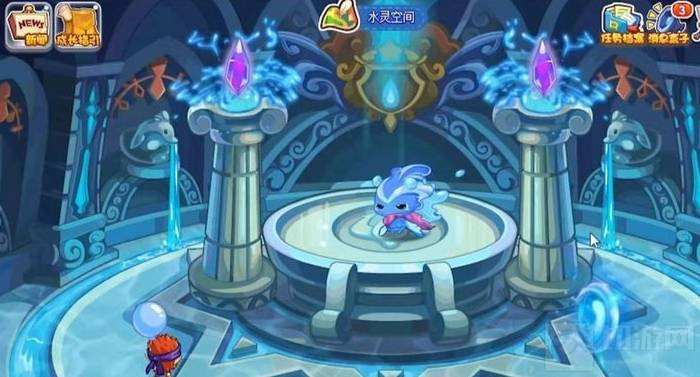 1、进入水晶神殿内后,找到并点击水灵兽。
