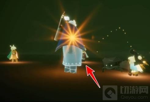 1.开启光遇游戏后,来到墓土螃蟹烧烤架旁边,吉他先祖的位置。