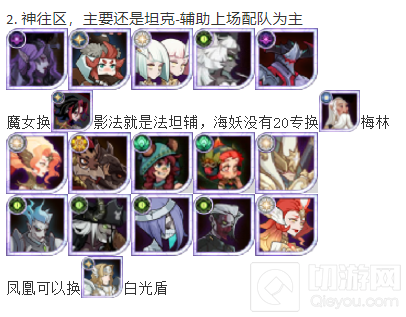 2. 神往区,主要还是坦克-辅助上场配队为主
