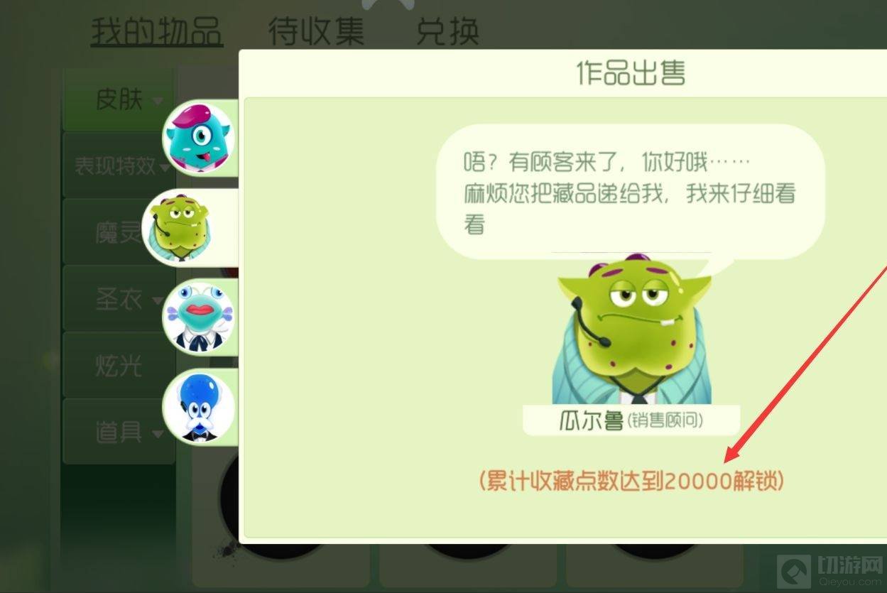 2、在魔法屋界面中点击右下角的我的物品,在个人物品界面即可看到销售顾问解锁需要的收藏点数,达到20000收藏点数即可解锁销售顾问。