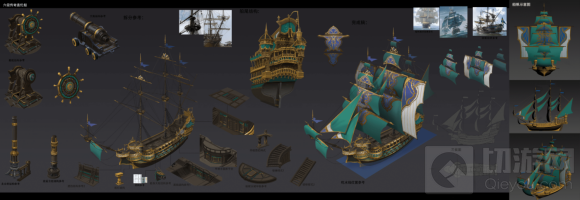 船只的设计虽然看起来没有建筑复杂,没有人物多,但船只作为一个经常会出现在冒险者游戏画面里的载体,细节方面的设计就更加重要,我们认为只有这样,才能真正带给冒险者们一个最真实的大航海背景下的开放世界体验。