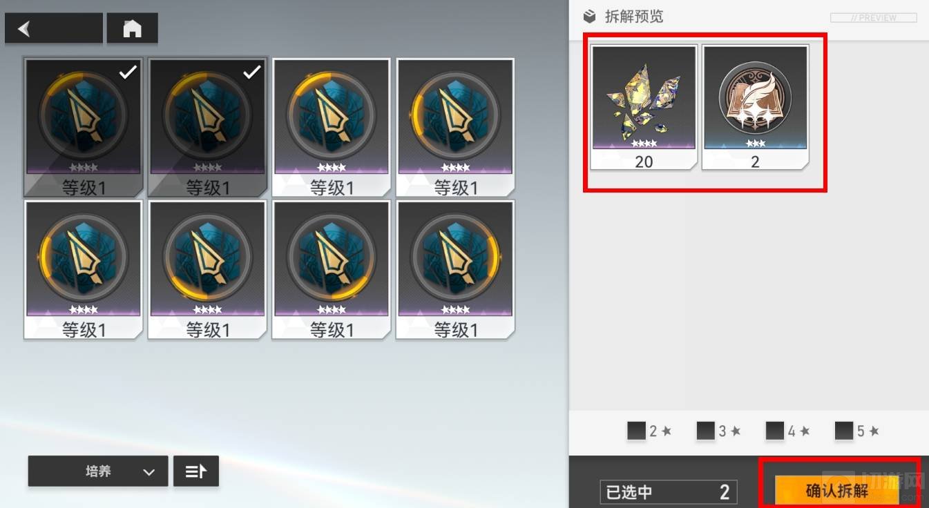 3、最后就能选中刻印进行分解了,会返还一部风的强化和突破素材。