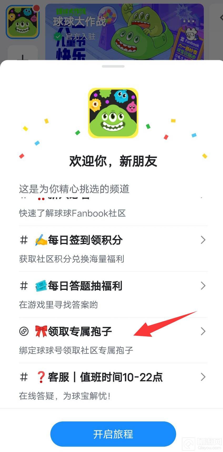 球球大作战社区位置如下: