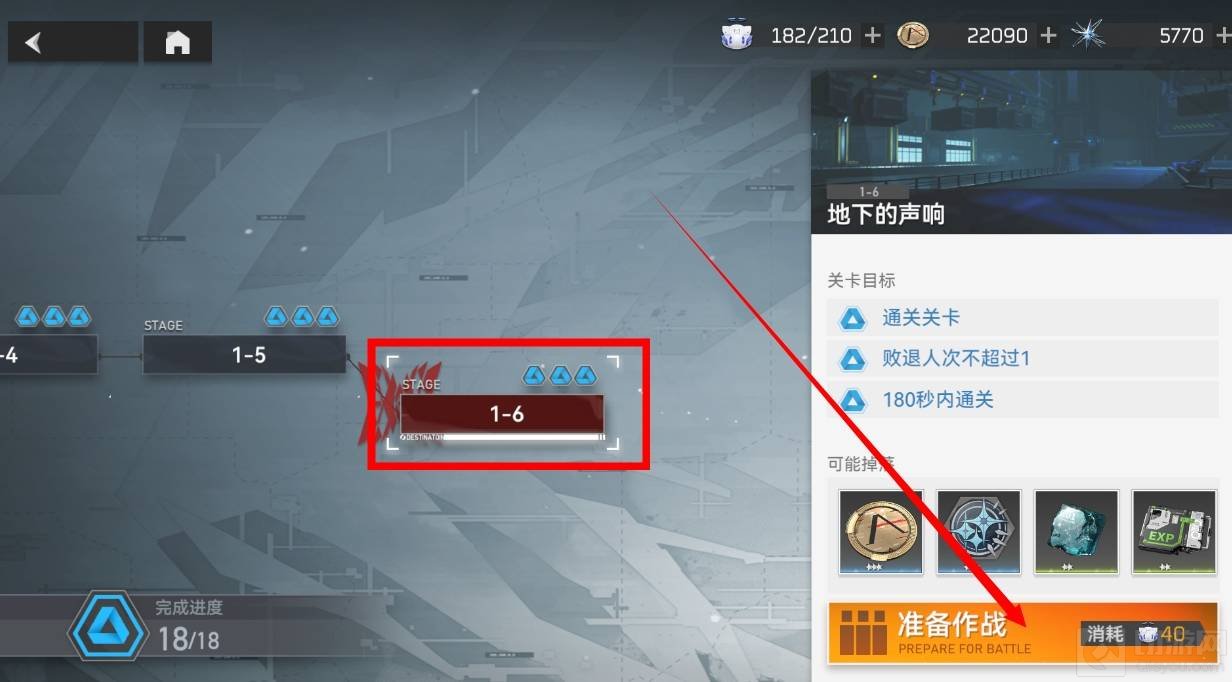 2、然后选择主线的关卡,点击准备作战;