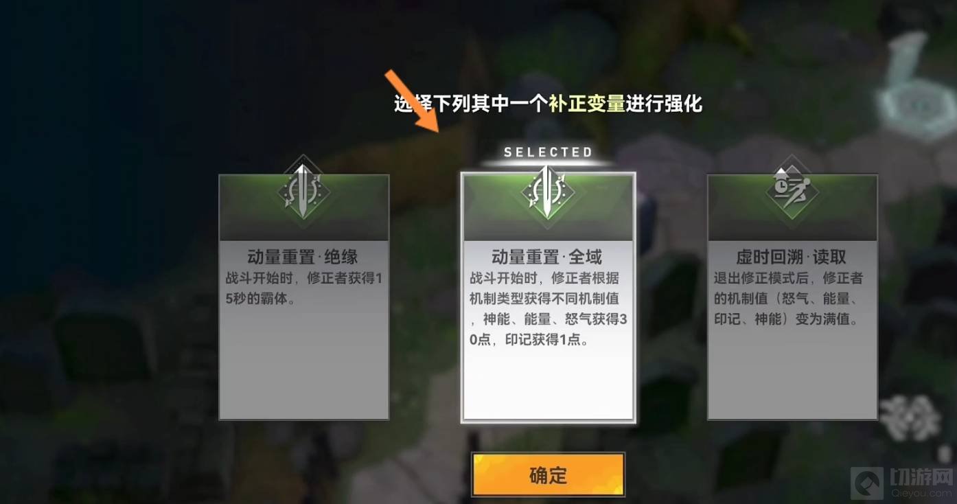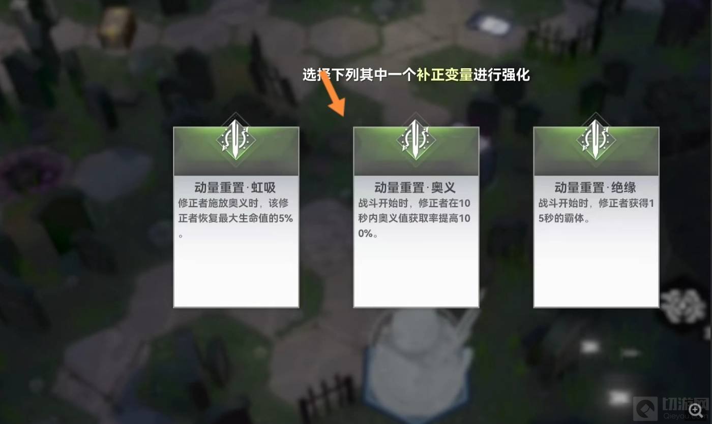 4、打败后会出现一个箱子,打开之后有三个加成,推荐选择动量重置•全域。