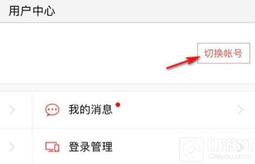 2、进入用户中心后,点击账号右端的切换账号。