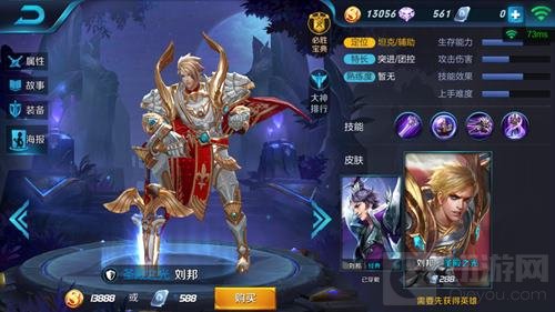 被动-君主野望:第三次普通攻击将附带刘邦最大生命值4~8%的法术伤害(在4/7/10/13级的时候提升1%),该效果对防御塔不生效。