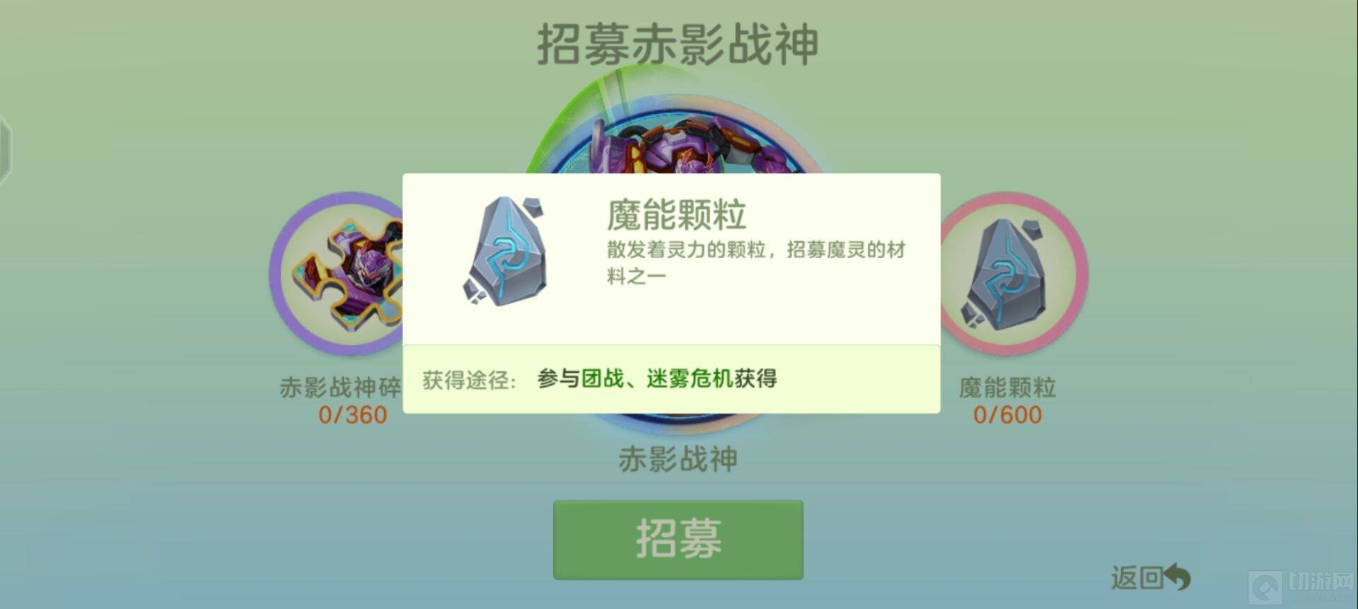 魔能颗粒是招募魔灵的材料之一,参与团战和迷雾危机都可以获得。
