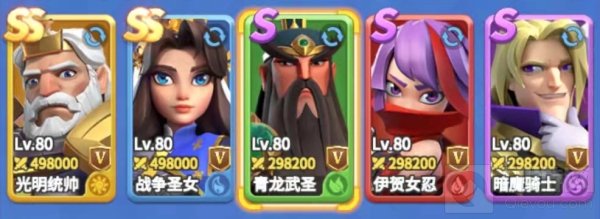本次阵容推荐将以S级英雄为主,领主们在初期若是有培养度较高的SS英雄,可根据元素和定位直接替换即可。