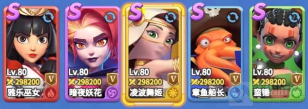 2、雅乐女巫+暗夜妖花+凌波舞姬+章鱼船长+蛮锤