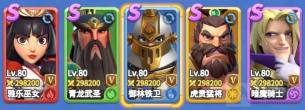 3、雅乐女巫+青龙武圣+御林铁卫+虎贲猛将+暗魔骑士