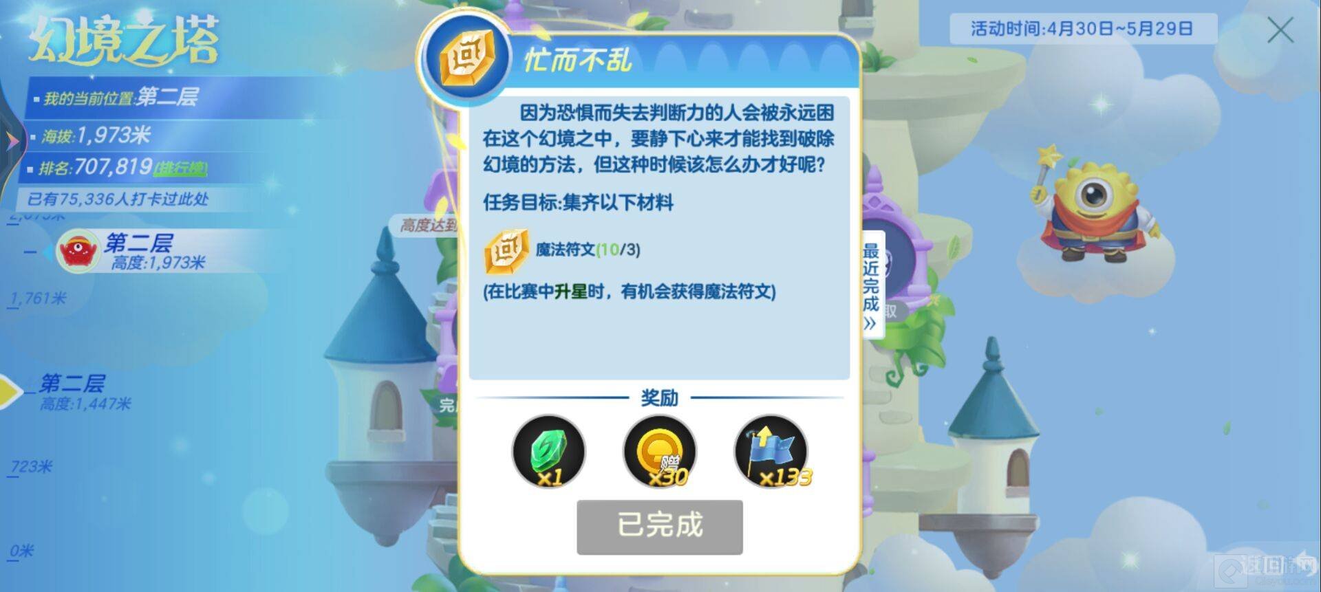 忙而不乱:收集3个魔法符文,这个在比赛中升星就可以获取。