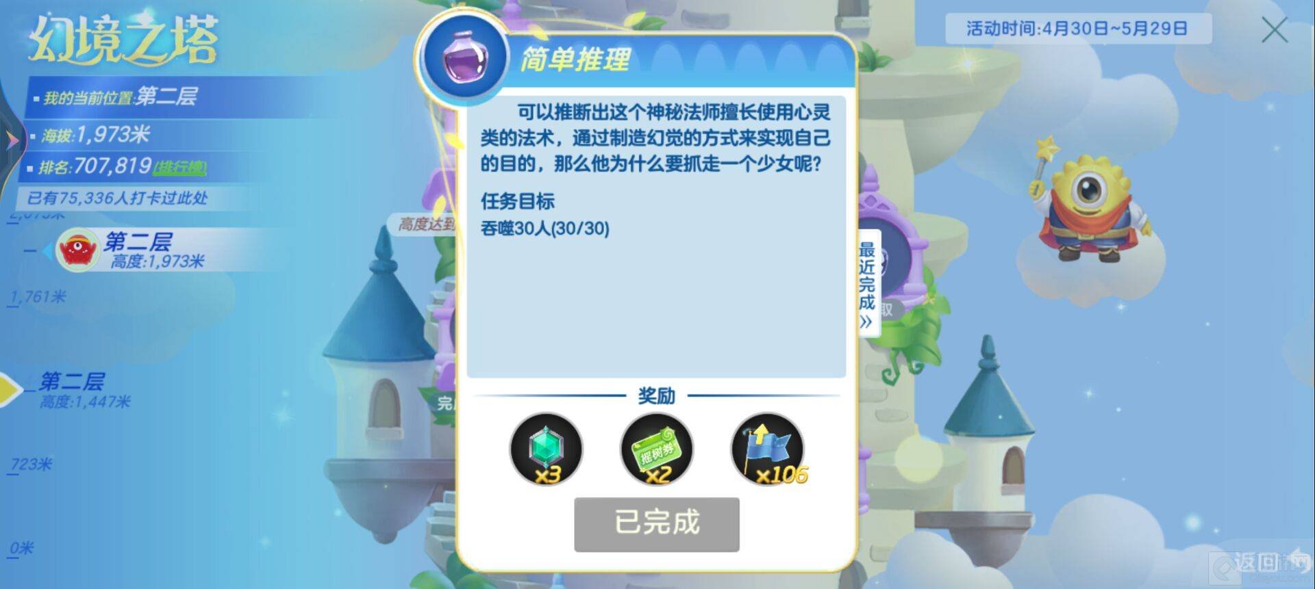 第二层可以领取幻境宝藏,想要幻境宝藏需要完成5个任务,完成之后就能到达第三层了。