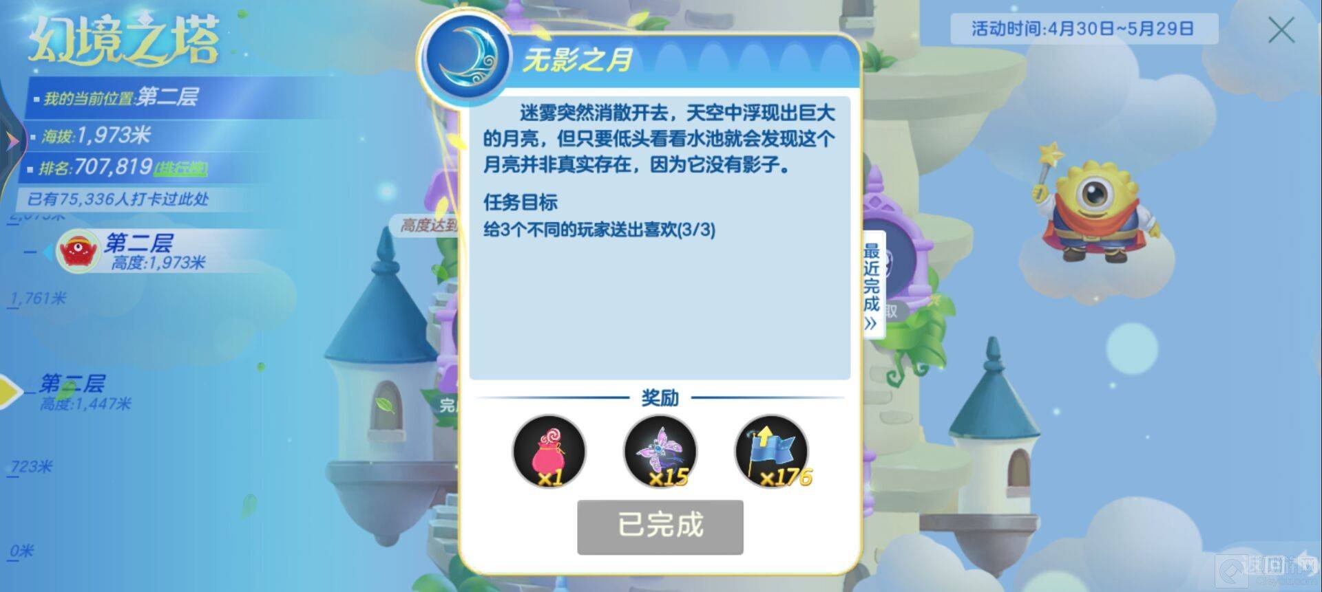 无影之月:给3个不同的玩家送出喜欢。