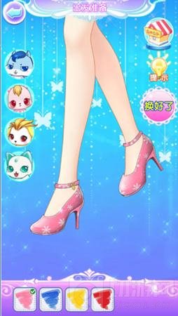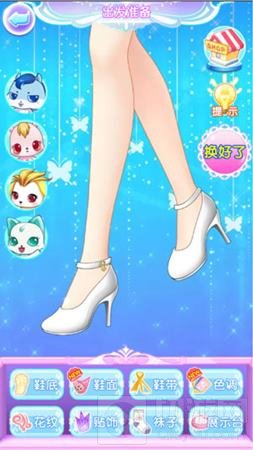 水晶鞋的装扮包括鞋底、鞋面、鞋带、色调、花纹、贴饰、袜子、展示台等八个部分。我们需要按着顺序依次进行设计装扮。首先是鞋底,换上之后我们可以很明显地看出不同鞋底的差异。根据关卡要求,这里我们就换上一个高跟鞋吧。同样,鞋面也是如此,大家就挑一个自己喜欢的吧。随着关卡的不断进行,我们可以收集到越来越多的鞋子素材哦!