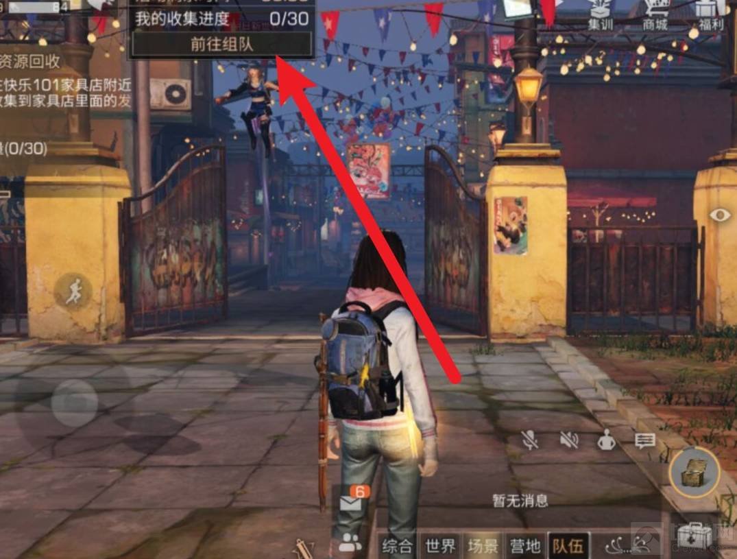 1.点击游戏界面的组队或者是屏幕下方的队伍进行组队。