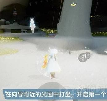 4、在向导附近的光圈中打坐,开启第一个任务。