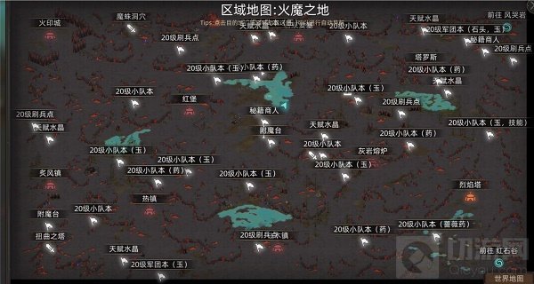 4.在火魔之地这个地图中,有两个附魔台可以给装备附魔,几个城镇和地点,还有大量的玉石出产,同时也能直接前往红石谷这个资源大厂,不管是刷资源还是练级都是很好的地点。