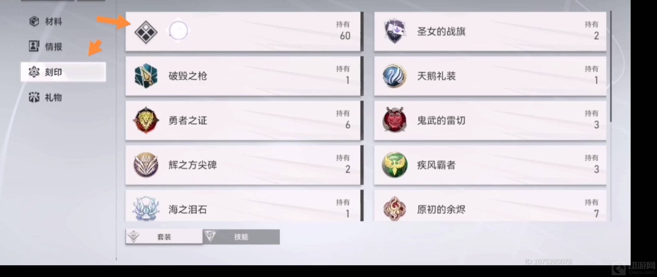 2、进去之后选择刻印,然后点击全部。