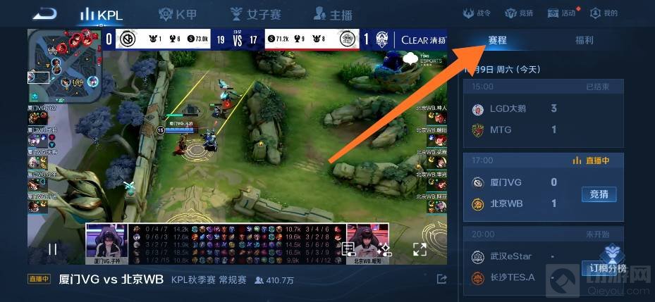 3、在右边有赛程里面是比赛日期。