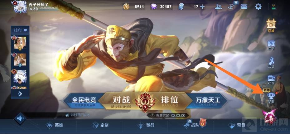 1、打开王者荣耀,然后点击赛事。