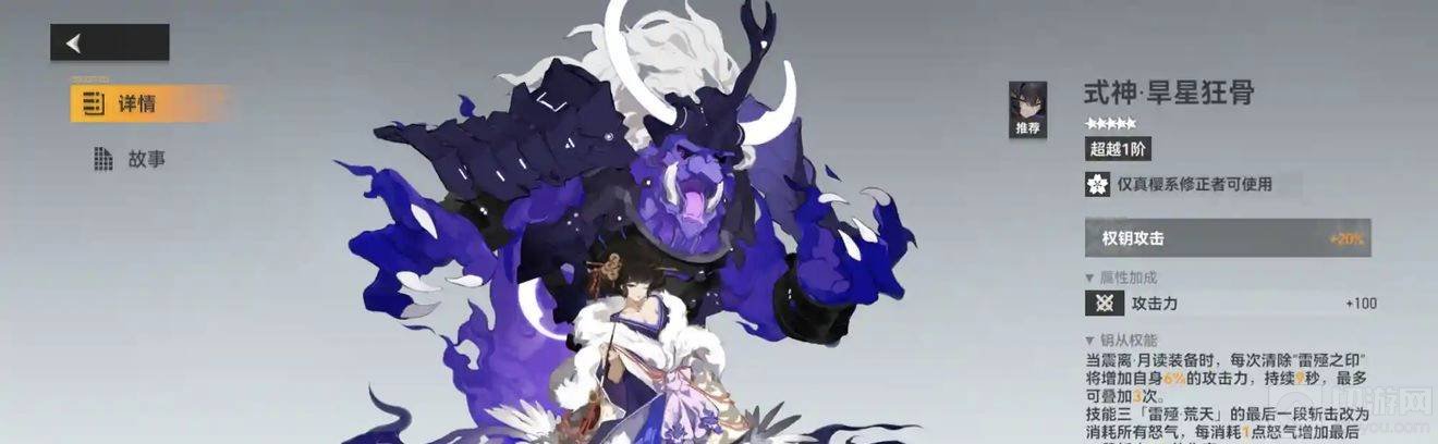 1、专属钥从:"式神·焊星狂骨"是她的专属装备,携带后可以很大程度提升其输出能力以及输出的上限值。这个这个专属的使用有一定的门槛,有些类似于自己的三技能。总的来说震离是需要有一定熟练度才行的,不然效果就会适得其反。