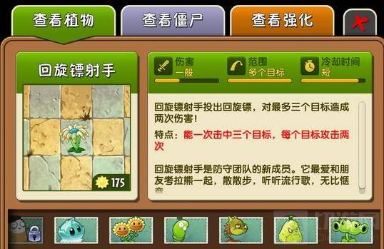 三、不能反弹:火龙草的火焰、芦苇的电流、激光豆的激光、菜问的拳头、大喷菇的气泡、追秒草的光刺。