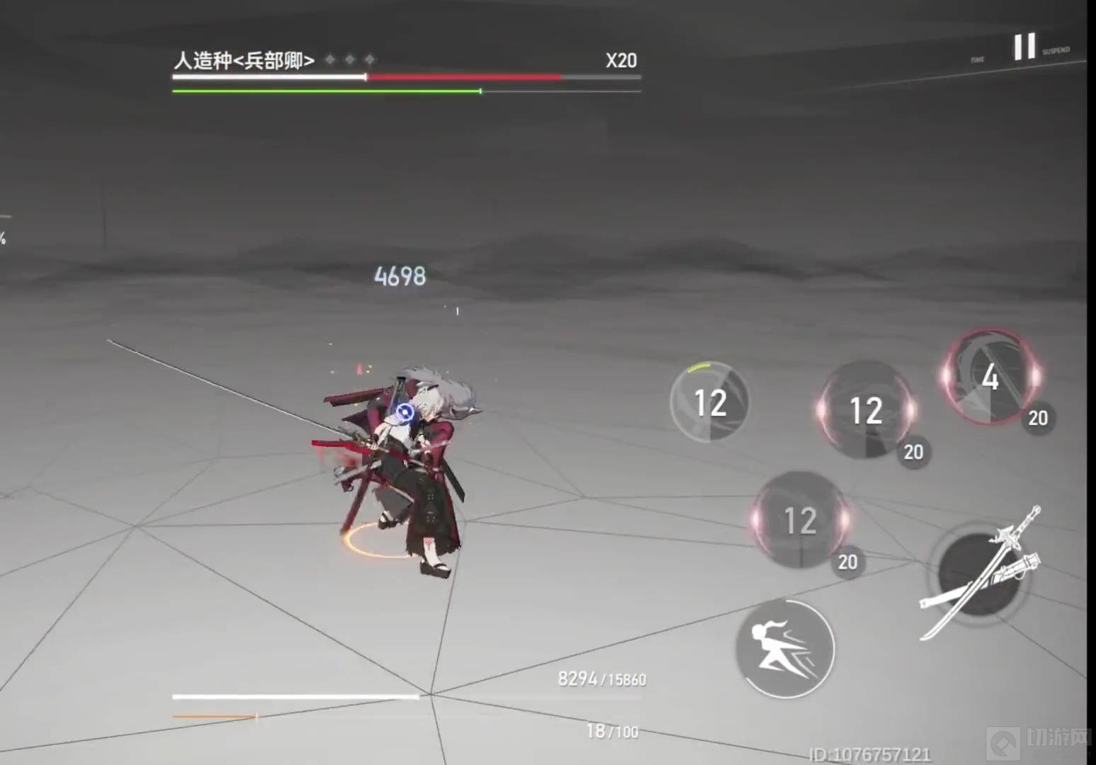 6、修正结束后,紧接着贴身就打一套技能,然后就直接闪避,躲开boss技能,在上去打输出。当然如果对自己身法够自信,直接可以贴身完美闪避输出,能触发boss的僵直状态。