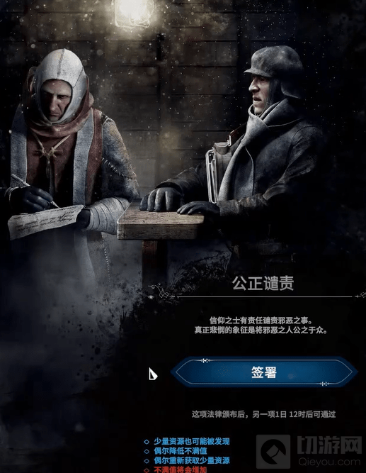 在游戏过程中玩家将面临许多艰难的抉择,比如在劳动力极度短缺的情况下,玩家可以选择让儿童参加工作或是强迫成年人24小时劳动;比如在缺少粮食的时候,玩家也可以往民众的食物里掺木屑或其他“添加剂”;比如面对反抗,玩家也可以从暴力镇压或以理服人两种方式解决问题。