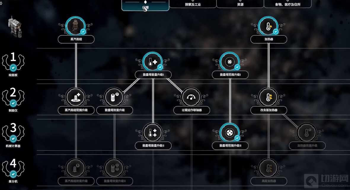 (游戏中的供暖、工业、医疗等科技树)