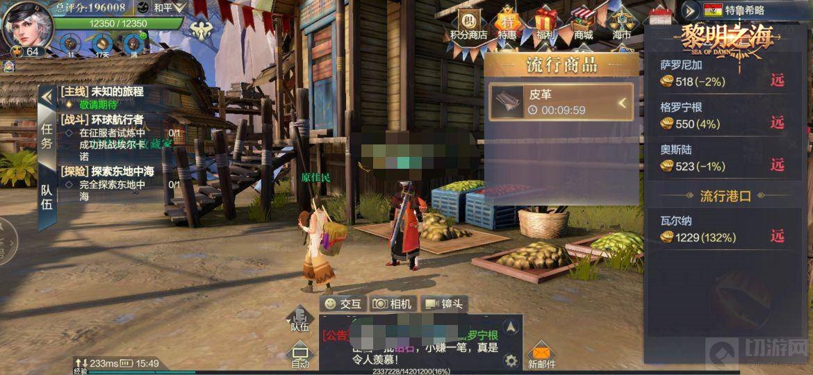 港口贸易是黎明之海中最稳定、安全获取贸易币的方式之一。玩家只需要将一个港口的货物买下,运输到另一港口出售,即算完成一次贸易。比如近港贸易就是在同一海域的两座港口之间运输货物、流行贸易是在固定时间内将指定货物运输到高利润的指定港口。这两种运输方式理论上都不受限制,是玩家最基本的贸易方式。
