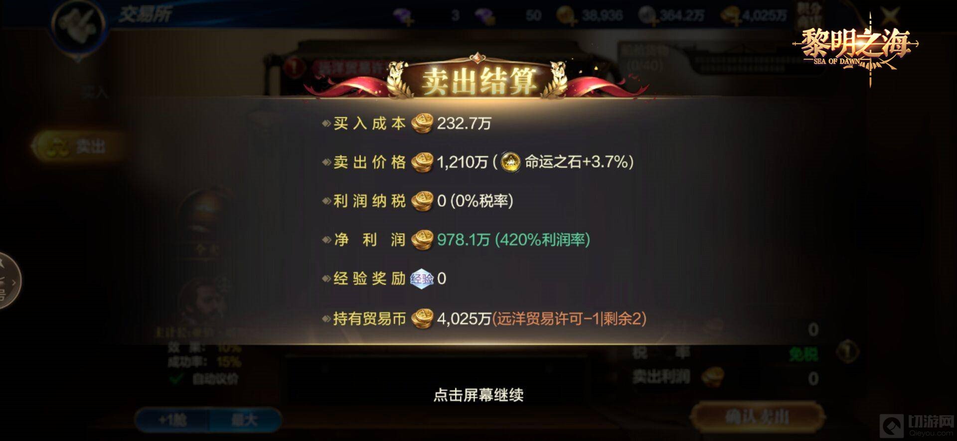 值得一提的是,出售货物也需要航海家不断关注利润率高的港口,才能达到最高收益。在黎明之海中,同一海域内的港口虽然在远洋贸易中都是稳赚不赔的,但是利润率仍然会在一个范围值内随时变化。这个变化涉及的因素非常多,比如当前港口若是突发意外情况,原本超高的利润率就会瞬间跌破。