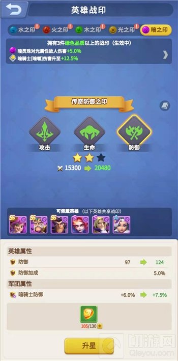消耗战印石升级,可大幅提升英雄与士兵的属性
