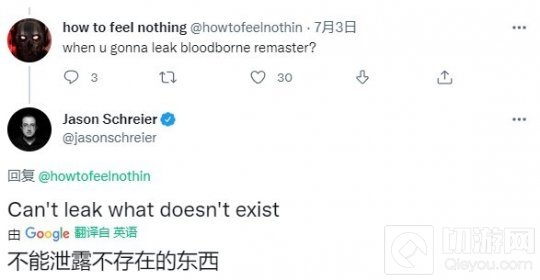 近日,有玩家通过社交媒体向彭博社记者Jason Schreier提问,是否能够向大家透露一些新版本《血源诅咒》的消息,对方给出的回答也非常直接:“无法泄露不存在的东西”。可以说是正面否决了玩家们关于新版《血源诅咒》的期待。