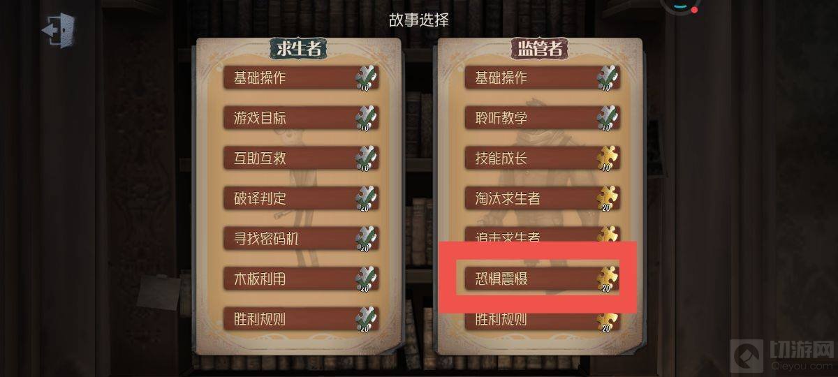 1.首先找到新手教学中的监管者恐惧震慑模块,然后点击进入。