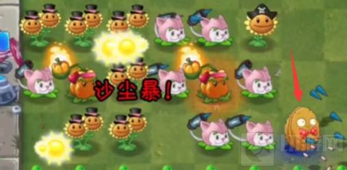⑥此时阵容已经成型,刚开始前排的向日葵可以用铲子铲掉,种植猫尾草。