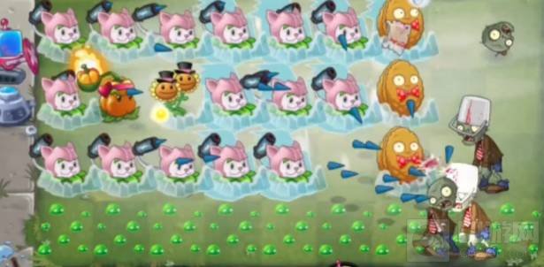 ⑨最后留两个双子向日葵,后排改成猫尾草,前排放3个坚果墙,即可通关。