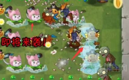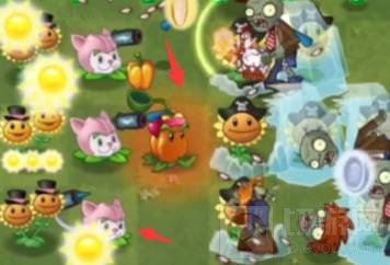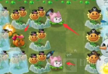 ④利用变身茄子,快速种植两个猫尾草,加一个辣椒投手,融化冰块。
