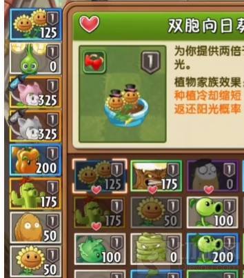 ①首先放双子向日葵和黄金蓓蕾,收集阳光。