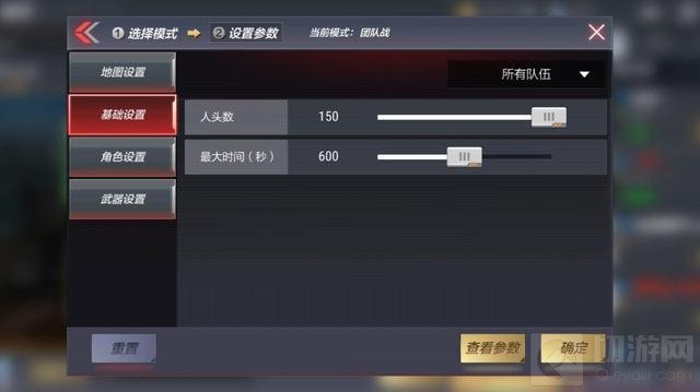 1、先进入枪战工坊,点击创建房间——团队战——运输船地图。点击“基础设置”,人头数拉满150,最大时间保持在600。
