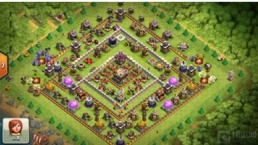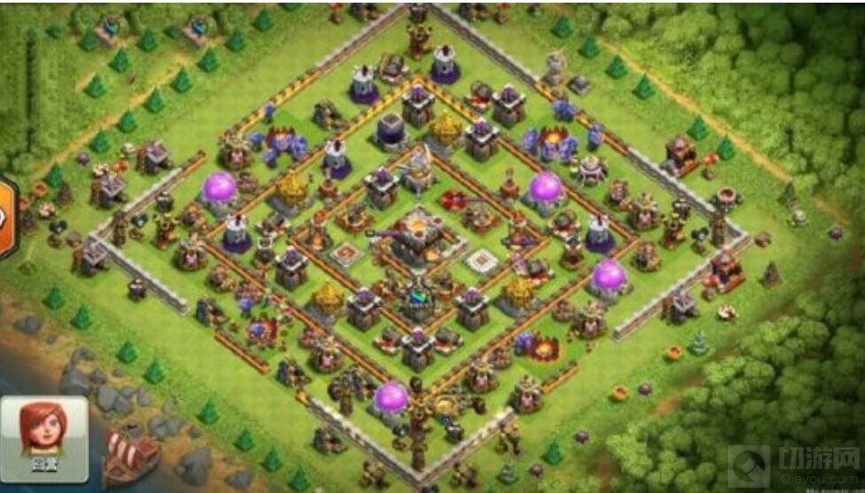 推荐一种大本营侧置阵型,但这个阵容不同的是此阵型为对称阵型,两侧多头地狱塔可以对从中间部分攻入的部队产生巨量伤害,侧边环形区域也使得主力部队容易走偏,这样就会给地狱塔创造输出的空间,一步步诱敌深入,是一个不错的阵容。