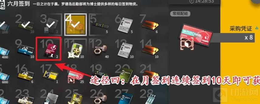 4、通过月签到。在连续签到10天即可获得2张加急许可道具。
