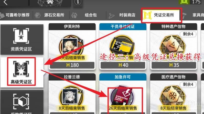 3、也可以通过采购中心的凭证交易所,在高级凭证区内使用高级凭证材料兑换获得。该交易所道具同样会更新。
