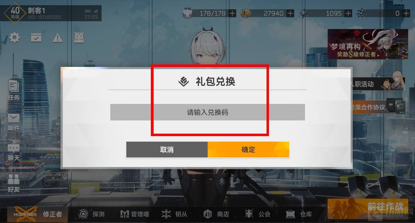 3、将相应的兑换码输入进去,点击确定即可兑换。