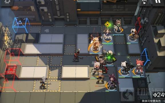 6. 350杀之后,会有两只法师和一只斧头哥打算偷渡左上角,先丢狙击,再撤退右边推推队里的单奶or单法,然后再下近卫。这里很灵活,用两个人能清掉三只怪进行,这里使用的是杰西卡和嫖的杜宾(普通45级)。