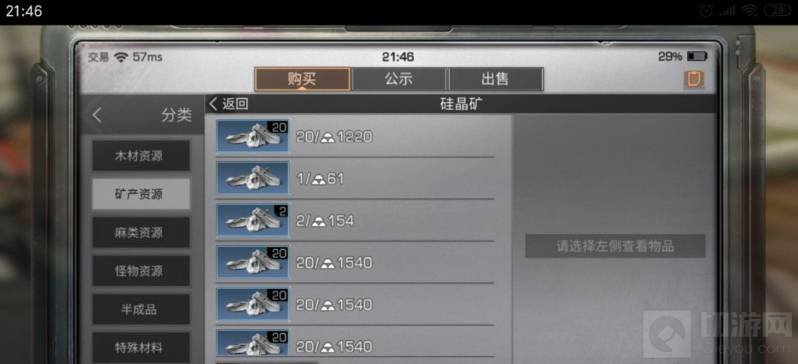 5.点击之后可以看到价格不等的硅晶矿,这个时候点击最上方的硅晶矿,因为最便宜的就是位于最上方。